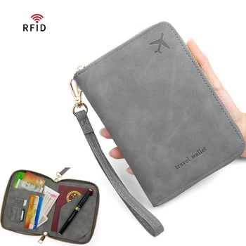 กระเป๋าสตางค์สำหรับเดินทางมีซิปคู่ป้องกัน RFID ที่ใส่บัตรโดยสารเครื่องบินความจุขนาดใหญ่ที่ใส่หนังสือเดินทางอเนกประสงค์